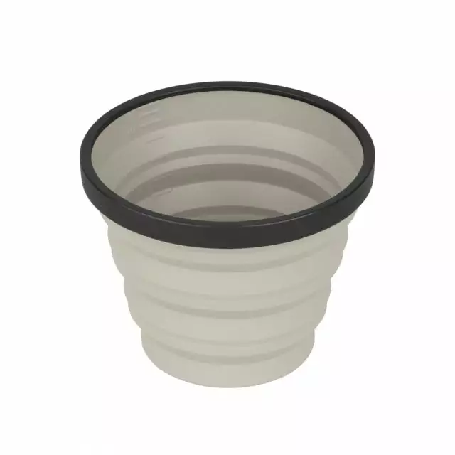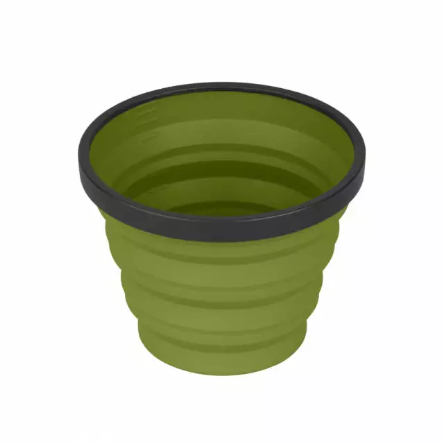 The X-Mug is a collapsible mug that is also calibrated as a measuring cup. The flexible silicone sides collapse making this a small compact disc sized dinnerware piece that nests neatly with other X-Series dinnerware and X-Pots.